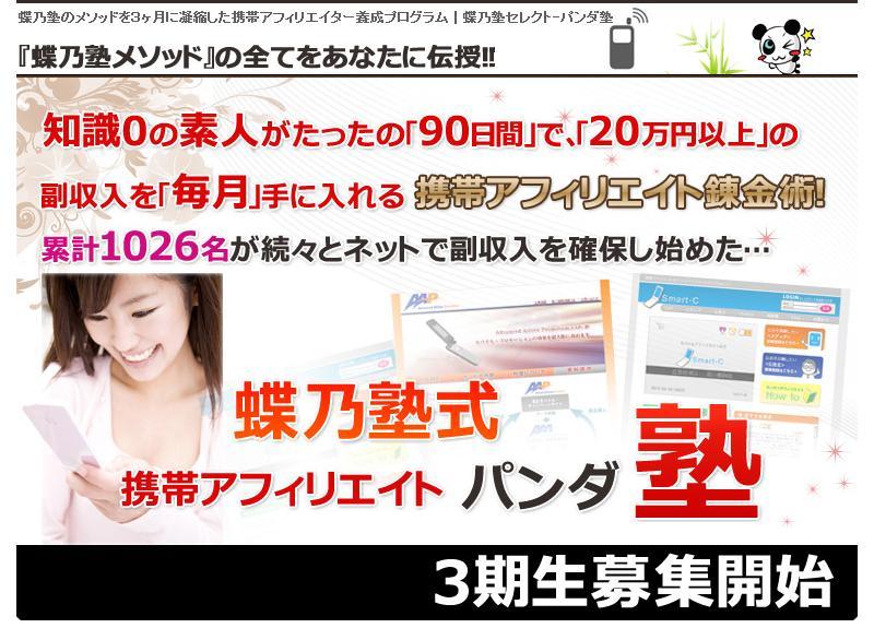 蝶乃塾のメソッドを3ヶ月に凝縮した携帯アフィリエイター養成プログラム!蝶乃塾式携帯アフィリエイトパンダ塾
