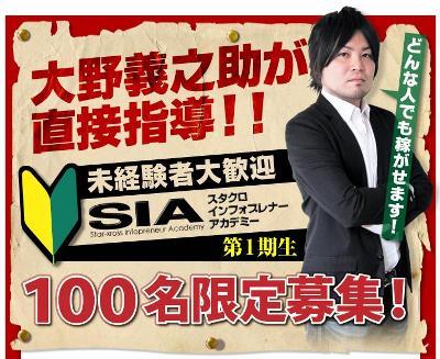 次世代情報起業NO.1の株式会社スタクロ・大野義之助が情報起業でこれから本当に稼げる方法の直接指導をついに開始!!【SIA】スタクロ・インフォプレナー・アカデミー